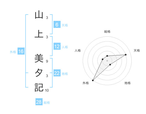 山上 美夕記さんを姓名の画数から五運を鑑定