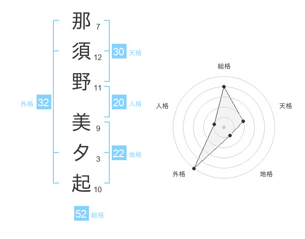 那須野 美夕起さんの総格は52画の4点!