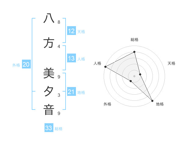八方 美夕音さんの総格は33画の4点!