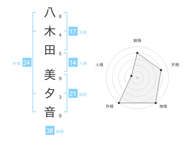 八木田 美夕音さんの総格は38画の4点!
