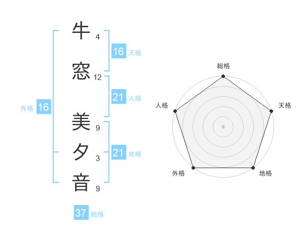 牛窓 美夕音さんを姓名の画数から五運を鑑定