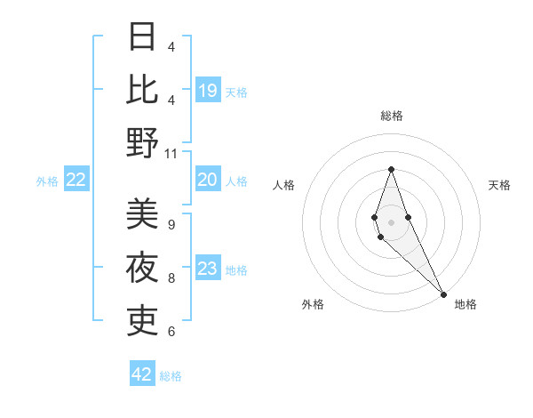 日比野 美夜吏さんを姓名の画数から五運を鑑定