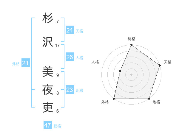 杉沢 美夜吏さんを姓名の画数から五運を鑑定