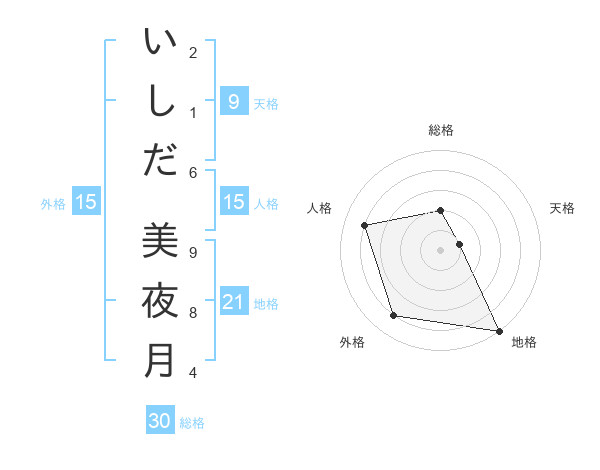 いしだ 美夜月さんを姓名の画数から五運を鑑定