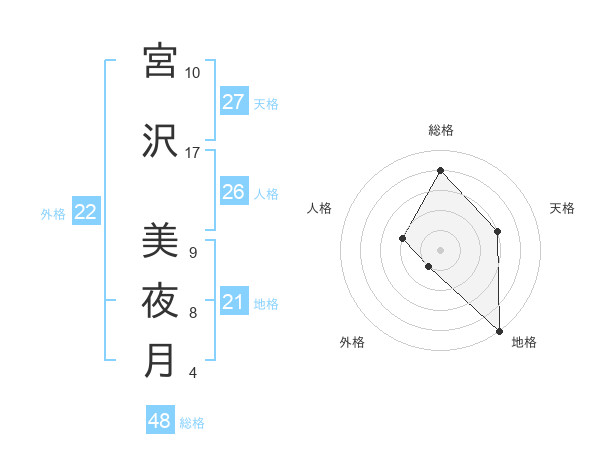 宮沢 美夜月さんを姓名の画数から五運を鑑定