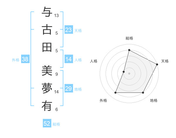 与古田 美夢有さんの天格は23画の5点!