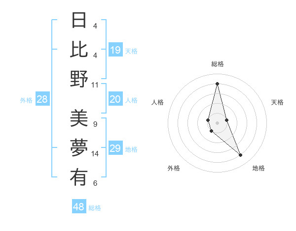 日比野 美夢有さんを姓名の画数から五運を鑑定