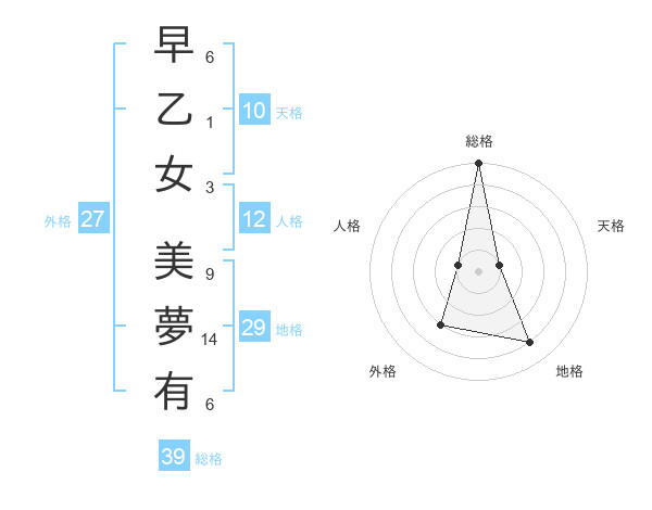 早乙女 美夢有さんを姓名の画数から五運を鑑定
