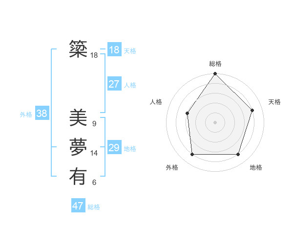 簗 美夢有さんの総格は47画の5点!