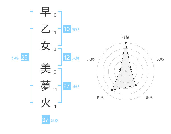 早乙女 美夢火さんを姓名の画数から五運を鑑定