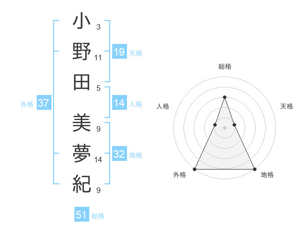 小野田 美夢紀さんの総格は51画の3点!