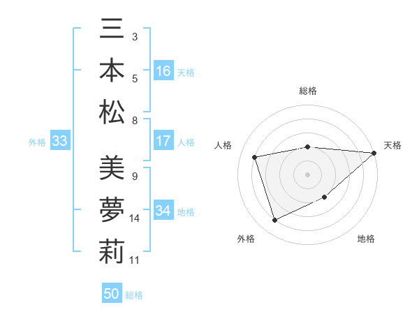 三本松 美夢莉さんの天格は16画の5点!