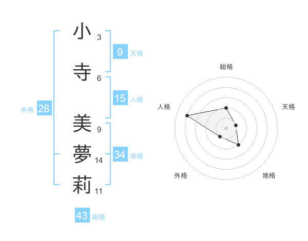 小寺 美夢莉さんの総格は43画の2点!