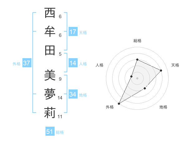 西牟田 美夢莉さんを姓名の画数から五運を鑑定
