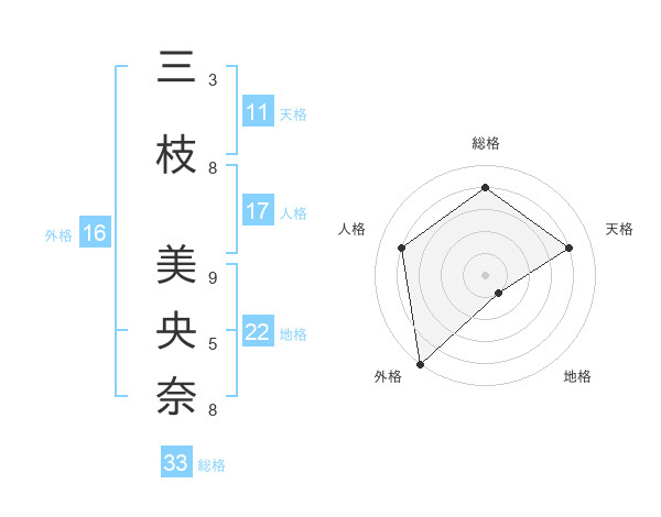 三枝 美央奈さんを姓名の画数から五運を鑑定