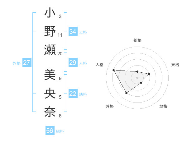 小野瀬 美央奈さんを姓名の画数から五運を鑑定