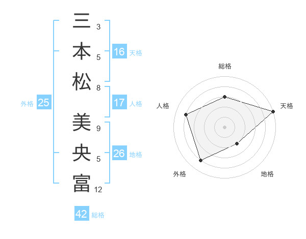 三本松 美央富さんを姓名の画数から五運を鑑定