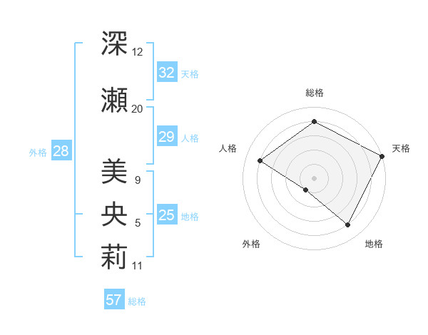 深瀬 美央莉さんの天格は32画の5点!