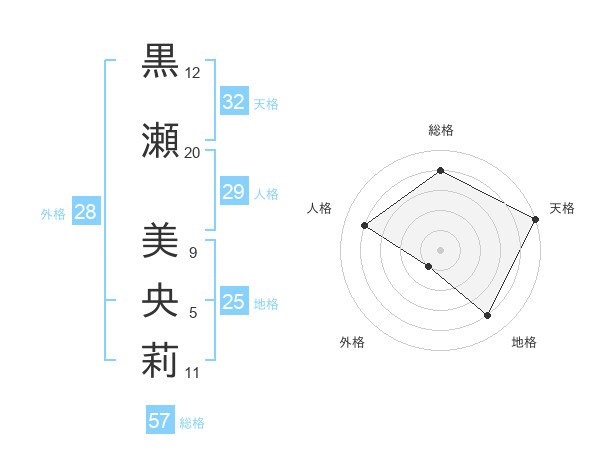 黒瀬 美央莉さんを姓名の画数から五運を鑑定