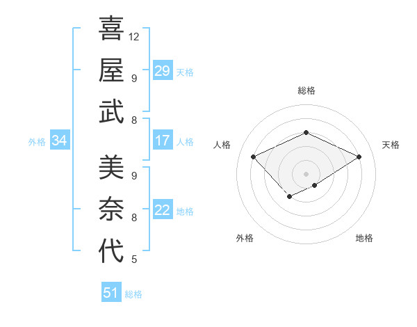 喜屋武 美奈代さんを姓名の画数から五運を鑑定