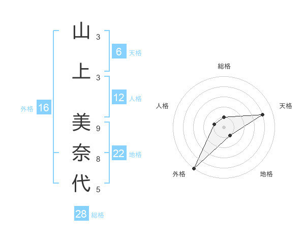 山上 美奈代さんを姓名の画数から五運を鑑定