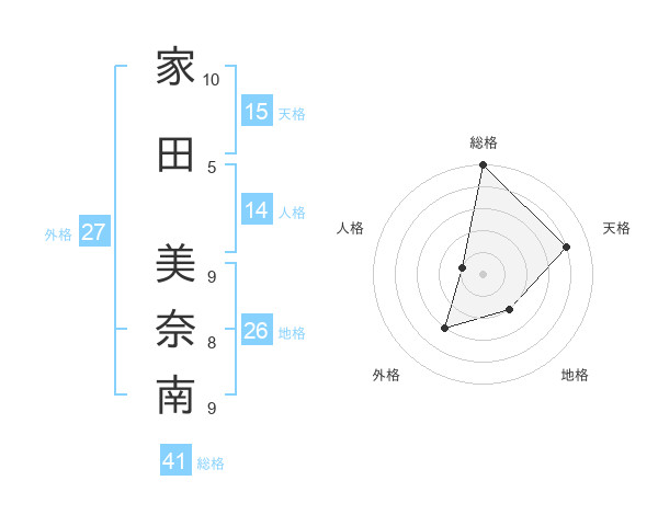 家田 美奈南さんを姓名の画数から五運を鑑定