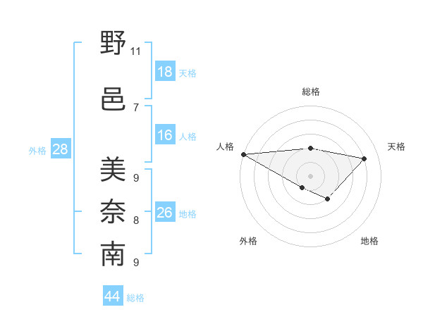 野邑 美奈南さんを姓名の画数から五運を鑑定