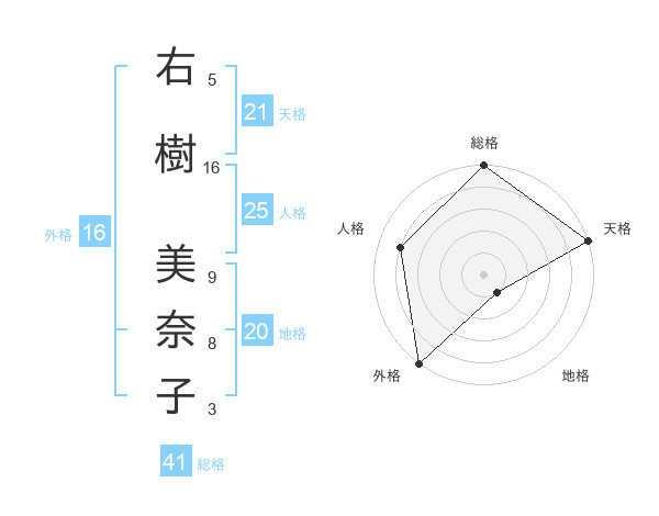 右樹 美奈子さんの外格は16画の5点!