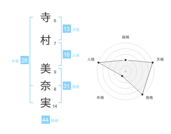 寺村 美奈実さんを姓名の画数から五運を鑑定