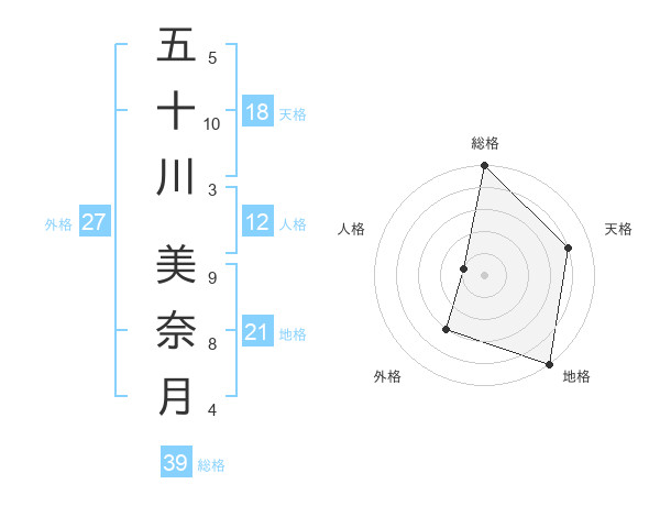 五十川 美奈月さんを姓名の画数から五運を鑑定