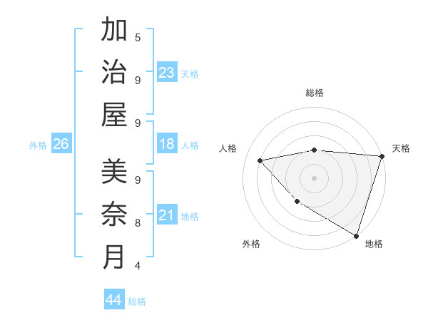加治屋 美奈月さんの天格は23画の5点