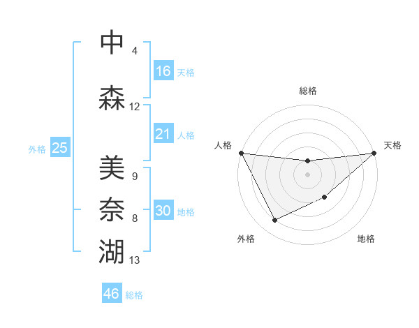 中森 美奈湖さんの天格は16画の5点!