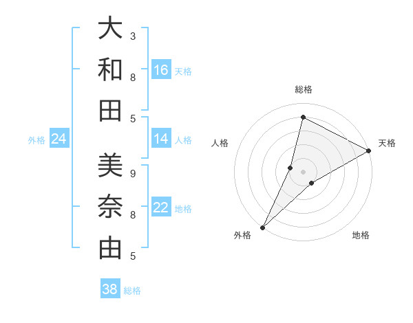 大和田 美奈由さんを姓名の画数から五運を鑑定