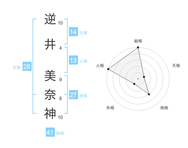 逆井 美奈神さんを姓名の画数から五運を鑑定
