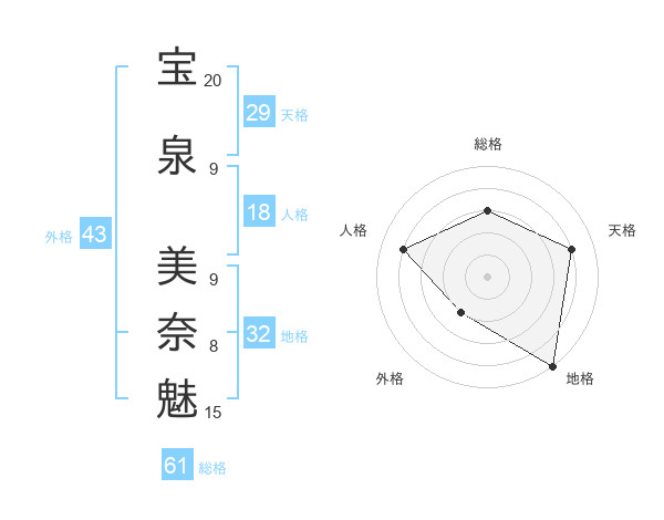 宝泉 美奈魅さんを姓名の画数から五運を鑑定