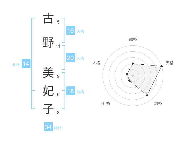 古野 美妃子さんの天格は16画の5点!