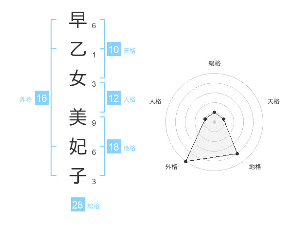 早乙女 美妃子さんを姓名の画数から五運を鑑定