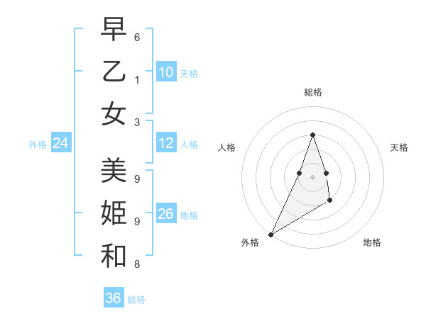 早乙女 美姫和さんの外格は24画の5点!