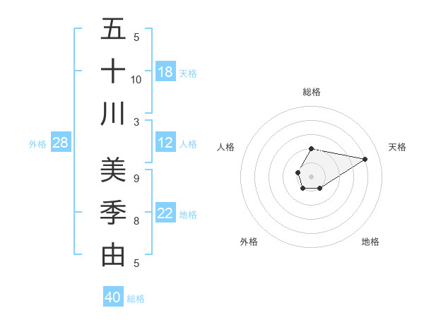 五十川 美季由さんを姓名の画数から五運を鑑定