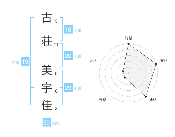 古荘 美宇佳さんを姓名の画数から五運を鑑定