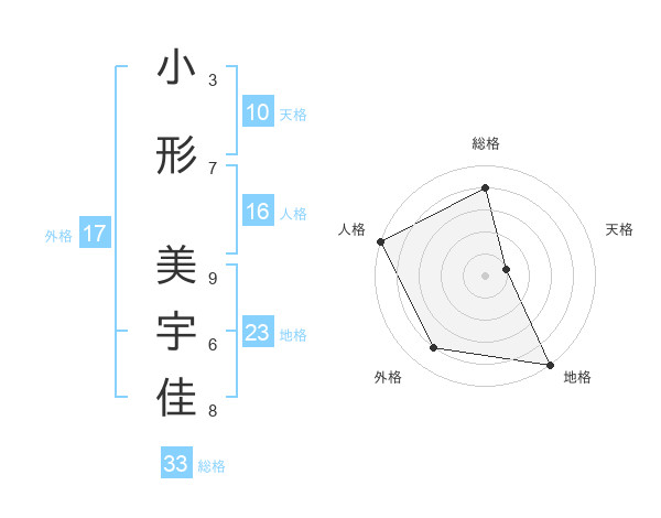小形 美宇佳さんを姓名の画数から五運を鑑定