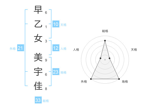 早乙女 美宇佳さんの総格は33画の4点!