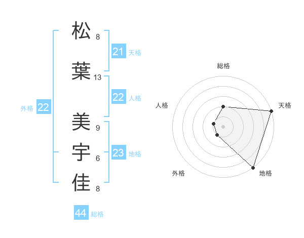 松葉 美宇佳さんの総格は44画の2点!