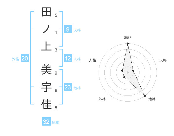 田ノ上 美宇佳さんの総格は32画の5点