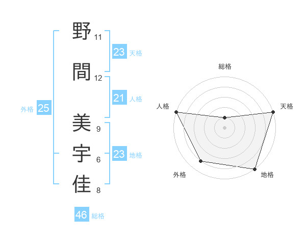 野間 美宇佳さんの総格は46画の1点!