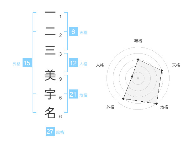 一二三 美宇名さんを姓名の画数から五運を鑑定