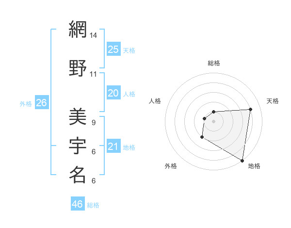 網野 美宇名さんを姓名の画数から五運を鑑定