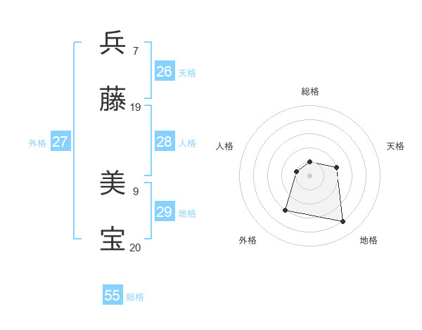 兵藤 美宝さんを姓名の画数から五運を鑑定