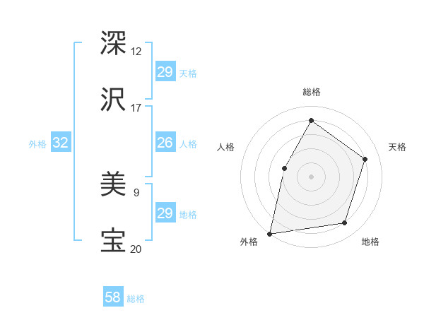 深沢 美宝さんを姓名の画数から五運を鑑定