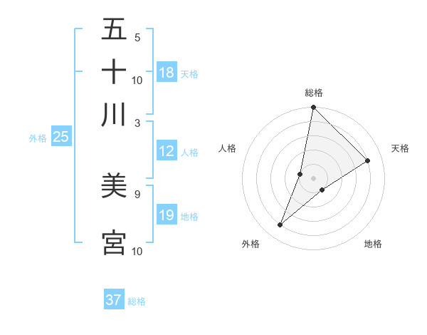 五十川 美宮さんを姓名の画数から五運を鑑定